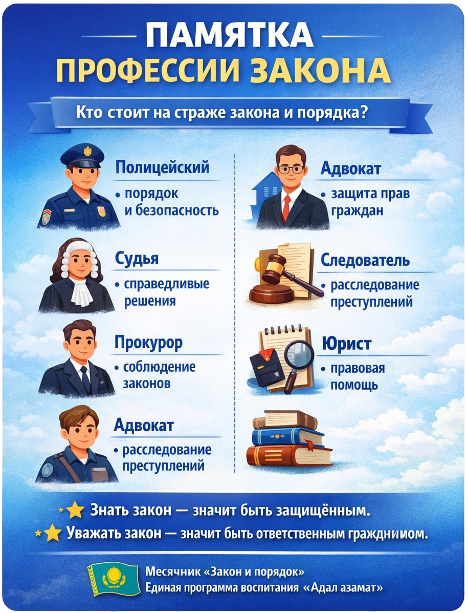 Клуб «Адал ұрпақ» — это возможность не просто говорить о ценностях, а жить ими каждый день. Это занятие проводится в рамках Месячника «Закон и порядок», чтобы мы понимали, что честность и справедливость — не только личные ценности, но и основа соблюдения закона и правил в обществе. Именно эти качества помогают нам быть ответственными, уважать других и быть достойными гражданами.